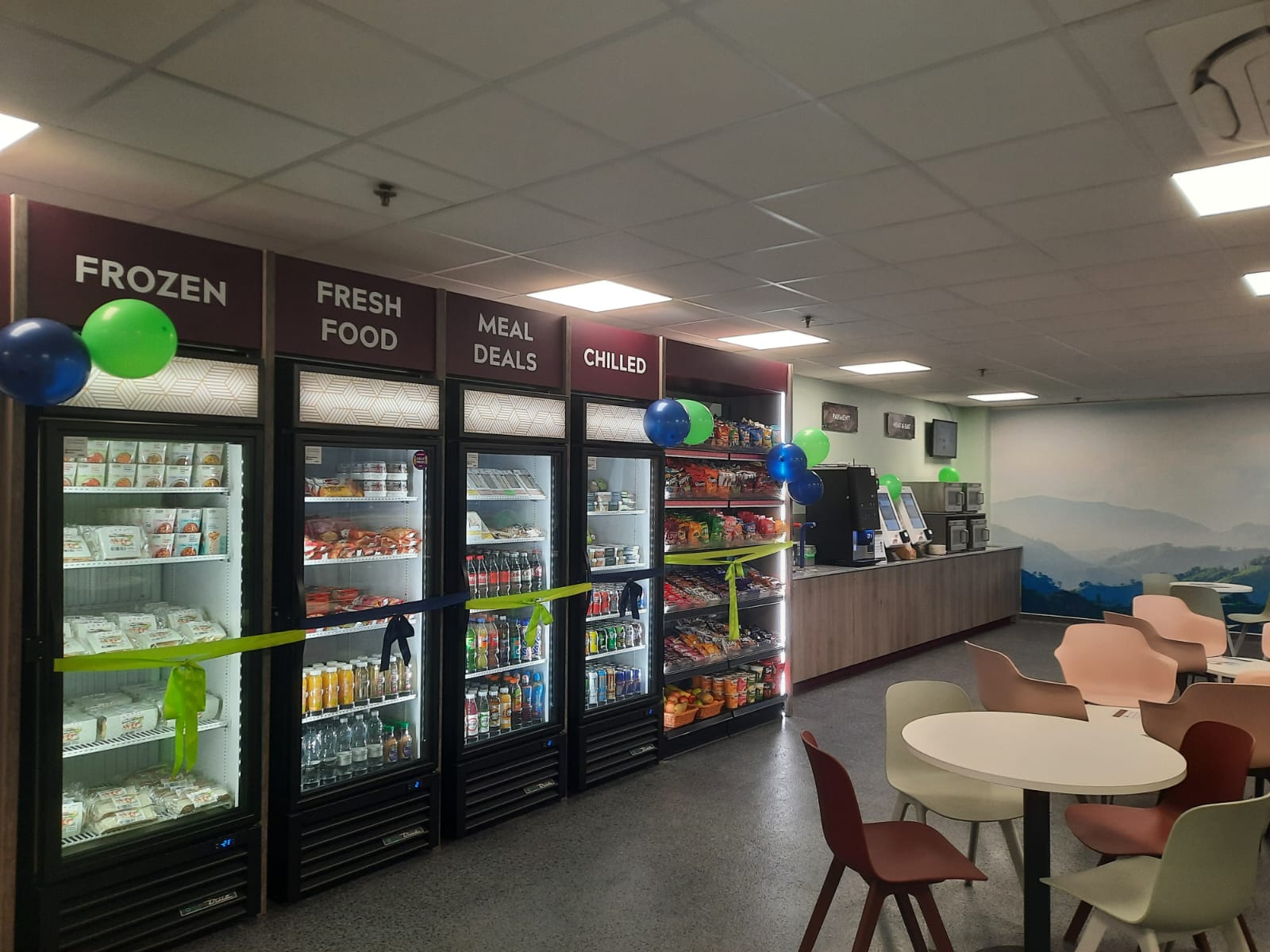 A micro market is a self service catering unit that transforms workplace refreshment. These unmanned retail environments include refrigerated coolers, open shelving, commercial coffee machines, water dispensers, and self-checkout kiosks. Operating 24/7 with cashless payment, micro markets offer employees more variety than traditional vending machines. including fresh meals and snacks, with transparent, upfront pricing.